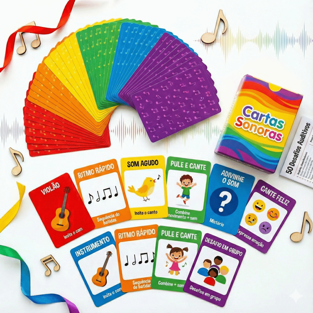 Cartas Sonoras + Desafios — Conjunto de cartões que transforma o treino auditivo em brincadeira envolvente