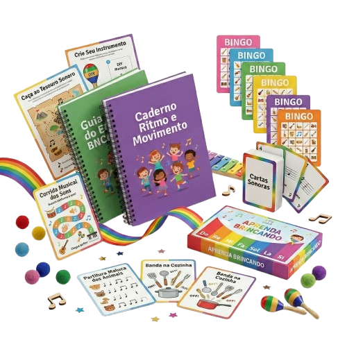 Material pronto para usar: é só imprimir e aplicar. Seus alunos aprendem música brincando, sem perceber que estão estudando.